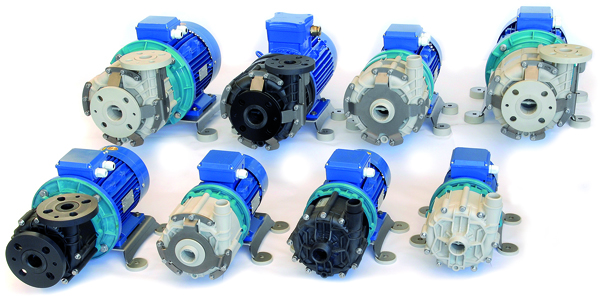 Pompele din seria TMP, cu cuplaj magnetic, au fost proiectate pornind de la ideea seriei precedente AM, dar incercand sa ofere solutii mai concise, conforme cerintelor actuale ale pietei. Aceste pompe centrifugale orizontale sunt cuplate direct cu motorul electric (monobloc); carcasa este construita in intregime din materiale termoplastice armate cu fibre, iar componentele interne sut realizate din ceramica, carbon si elastomeri fluorinati; fiind astfel evitat orice contact intre eventuale piese metalice si fluidul de lucru